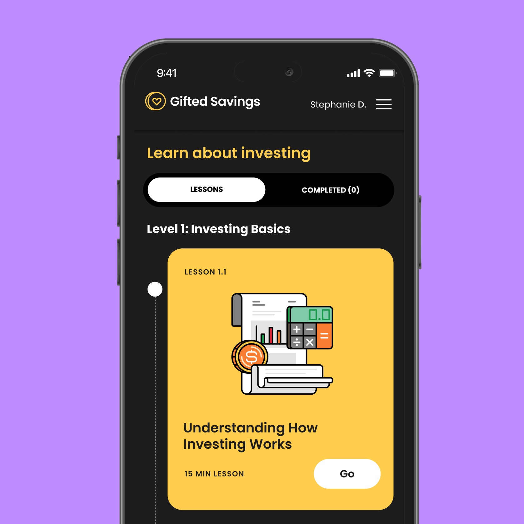Students complete short weekly lessons while observing how their portfolio fluctuates — no trading, just real-time learning with real assets.