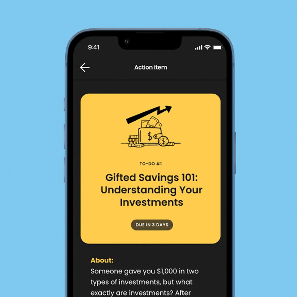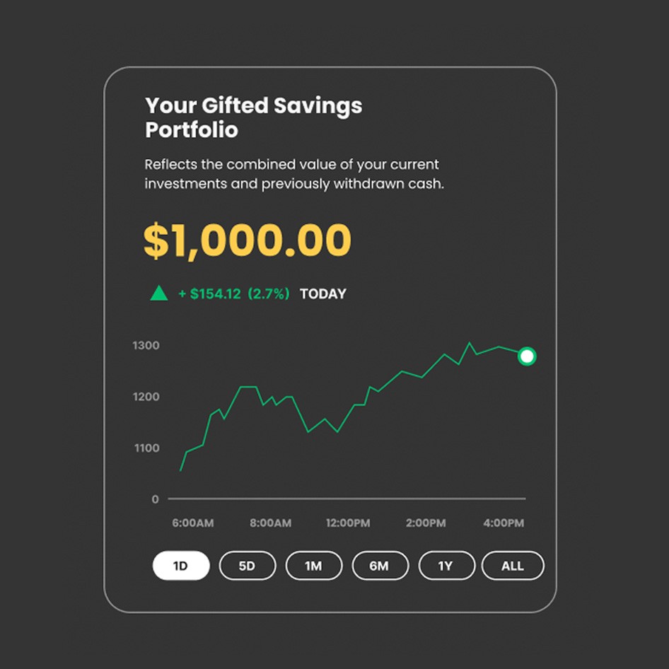Gifted Savings is a 501c3 nonprofit organization. 100% of every gift goes directly to student portfolios.